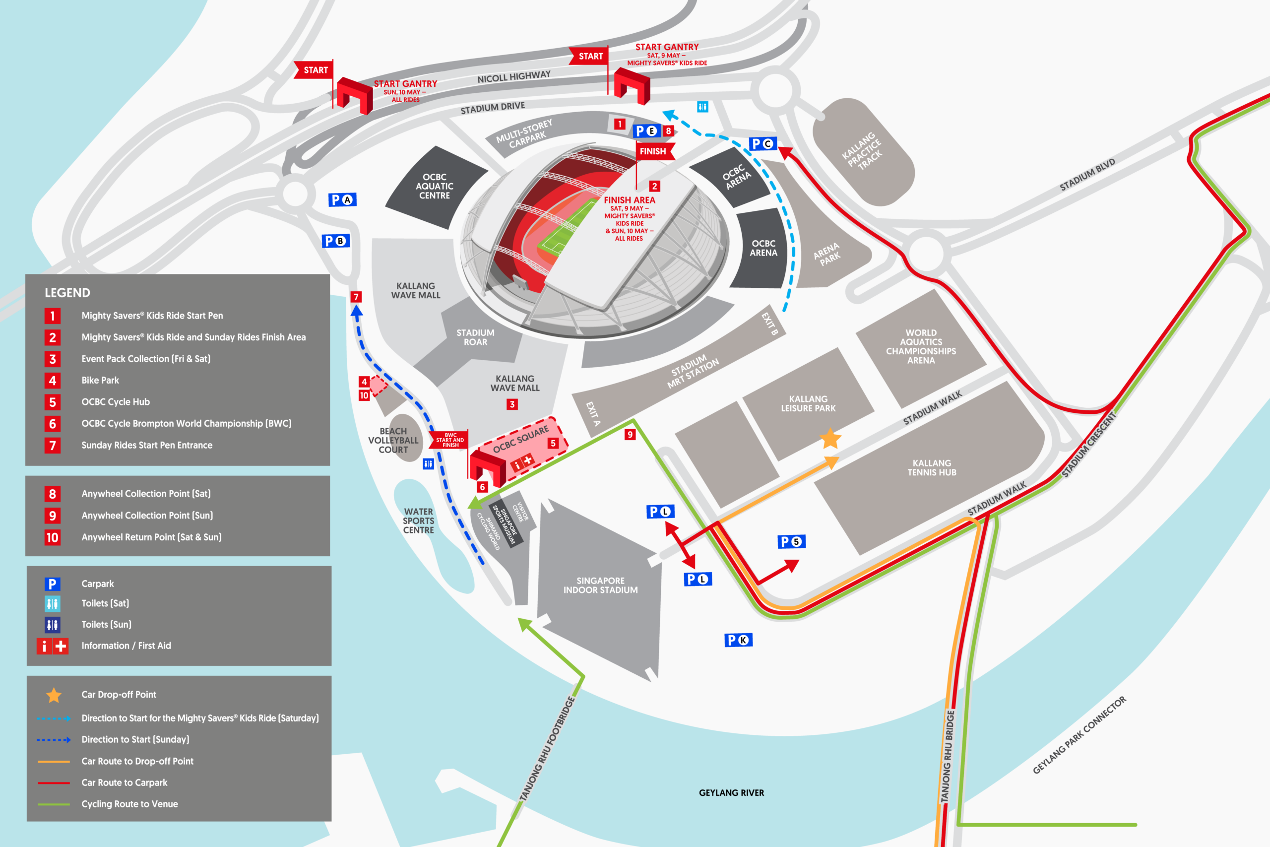 *Note that heavy traffic is expected on 9 and 10 May at The Kallang due to road closures. There are also limited parking lots available on site.